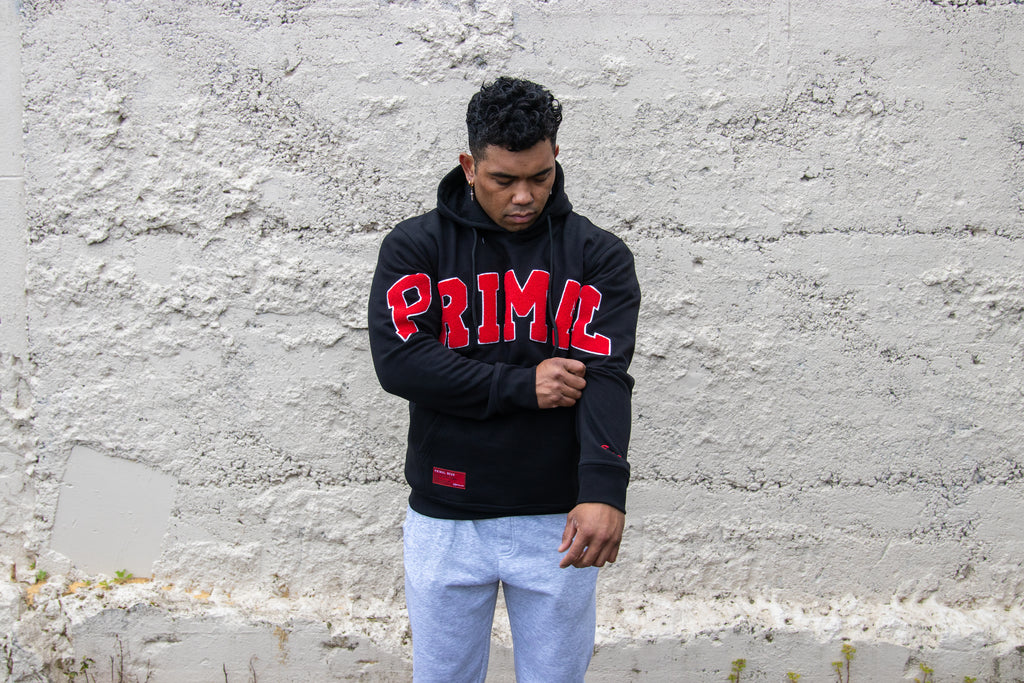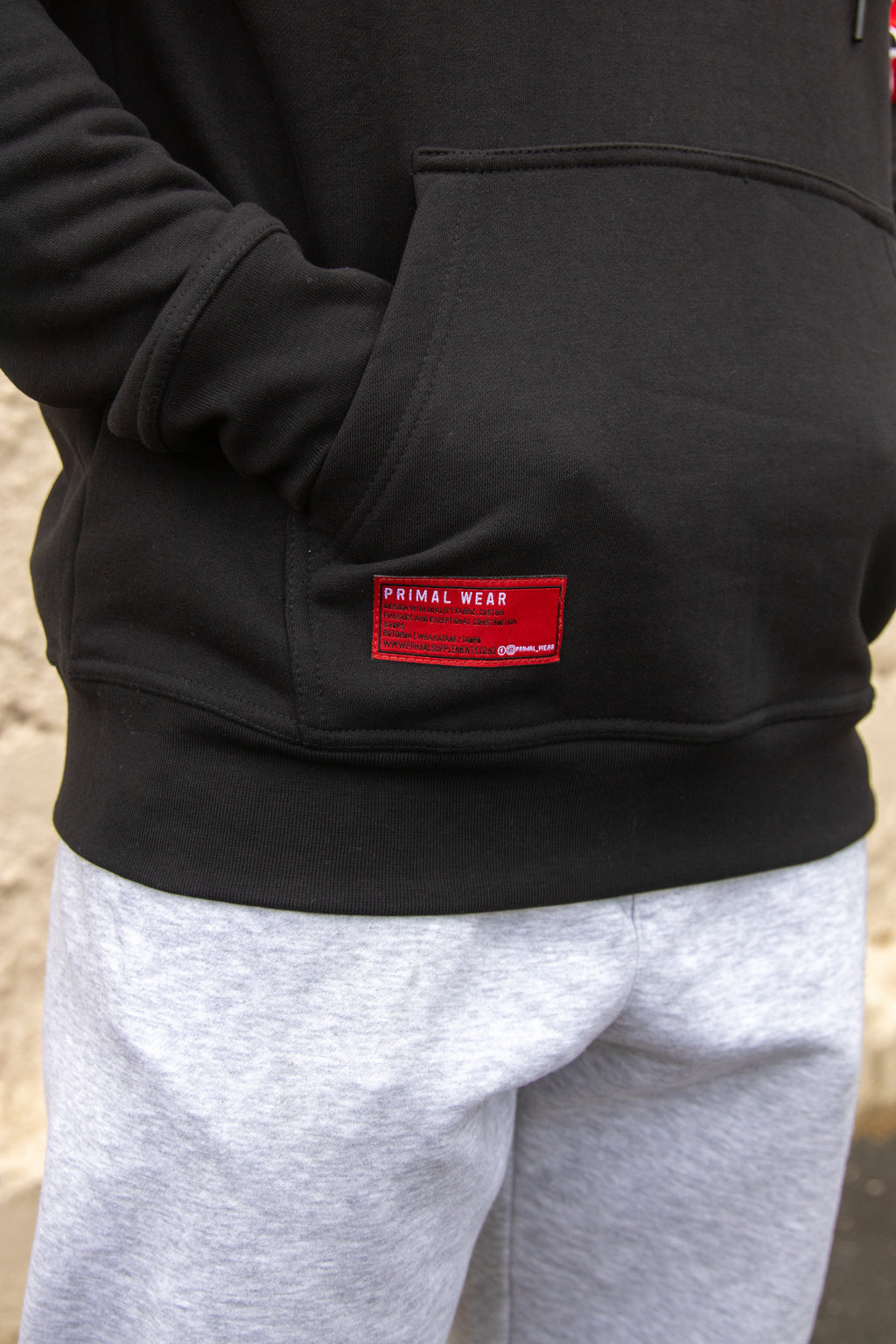 Crafted from black-hued cotton fleece, this pullover hoodie is characterised by PRIMAL branding on the front, in PINK and BLUE with black and orange embroidery.
